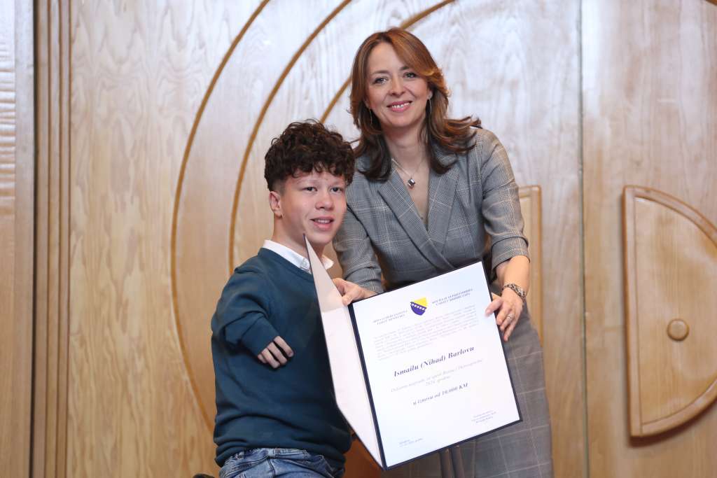 Ministarstvo civilnih poslova Bosne i Hercegovine dodijelilo je danas Državnu nagradu za sport za 2024. godinu mladom bh. paraolimpijcu, plivaču Ismailu Barlovu.