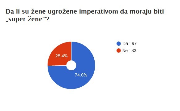 „Super žena može i mora sve, super žene i žene uopće izložene su svakodnevnom “mjerenju” onoga što je uradila s ciljem da se nađe greška a ne kao nešto gdje joj je potrebna pomoć.“