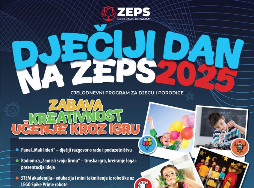 U okviru 29. Međunarodnog generalnog BH sajma privrede ZEPS 2025, u danas će biti održan Dječiji dan – ZEPS za klince: Biznis kroz igru u Zenici. Program će trajati od 10:00 do 16:00 sati na Sajamskom prostoru i ZEPS Business Stage-u, a mališanima će ponuditi spoj igre, znanja i zabave.