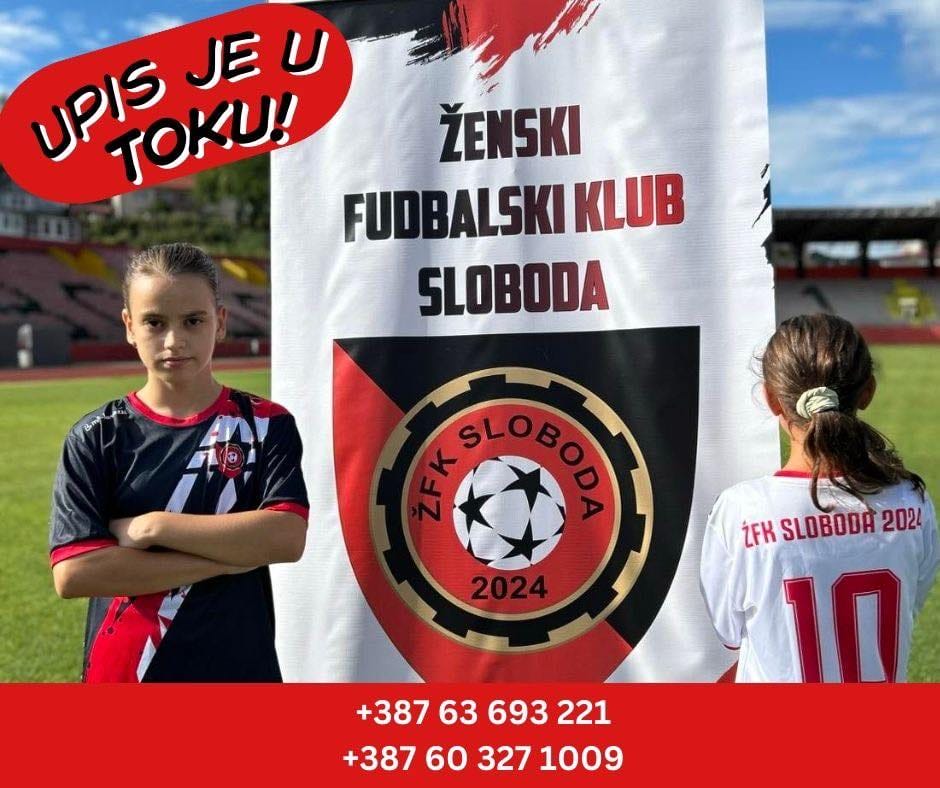 Ženski fudbalski klub Sloboda 2024 iz Tuzle otvorio je upis za nove članice i pozvao sve djevojčice koje vole fudbal da postanu dio njihove ekipe.